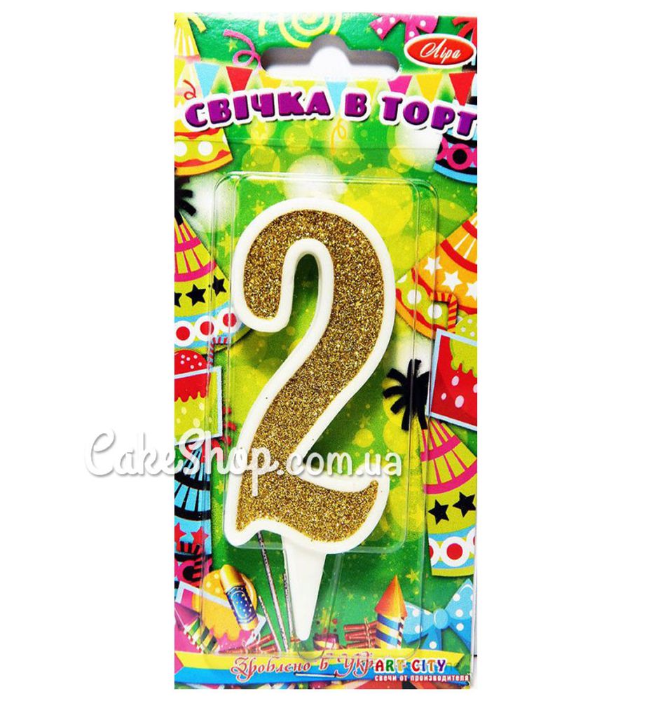 Ціна на Тортова свічка цифра Класика золото - 2 дорівнює 12 грн.