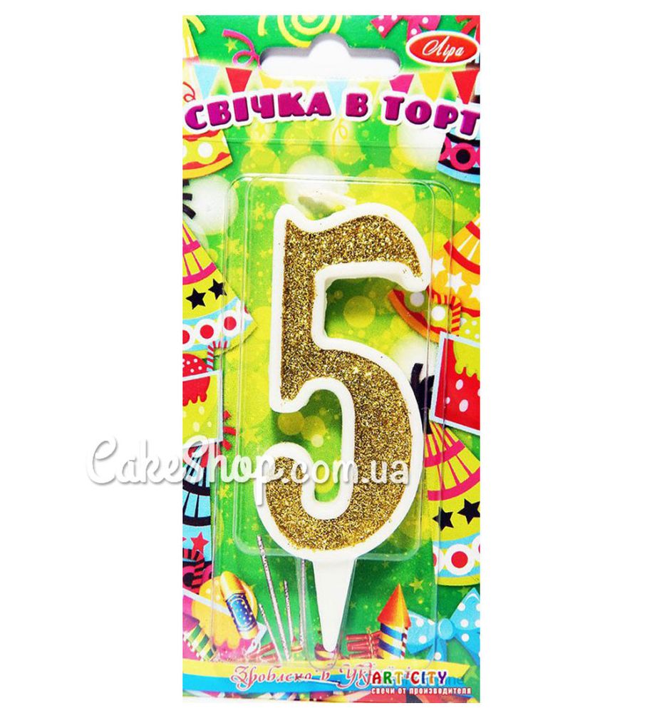 Ціна на Тортова свічка цифра Класика золото - 5 дорівнює 12 грн.