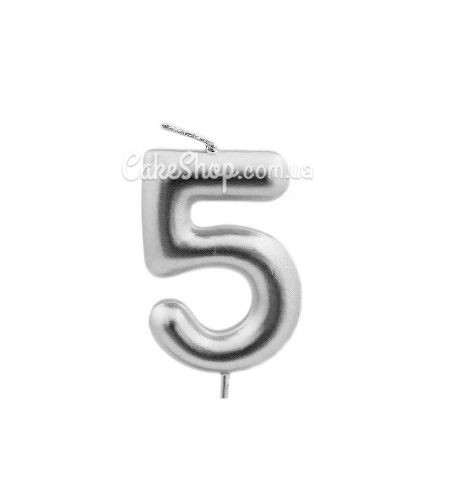 Ціна на Тортова свічка цифра велика Металізована срібло-5 дорівнює 35 грн.