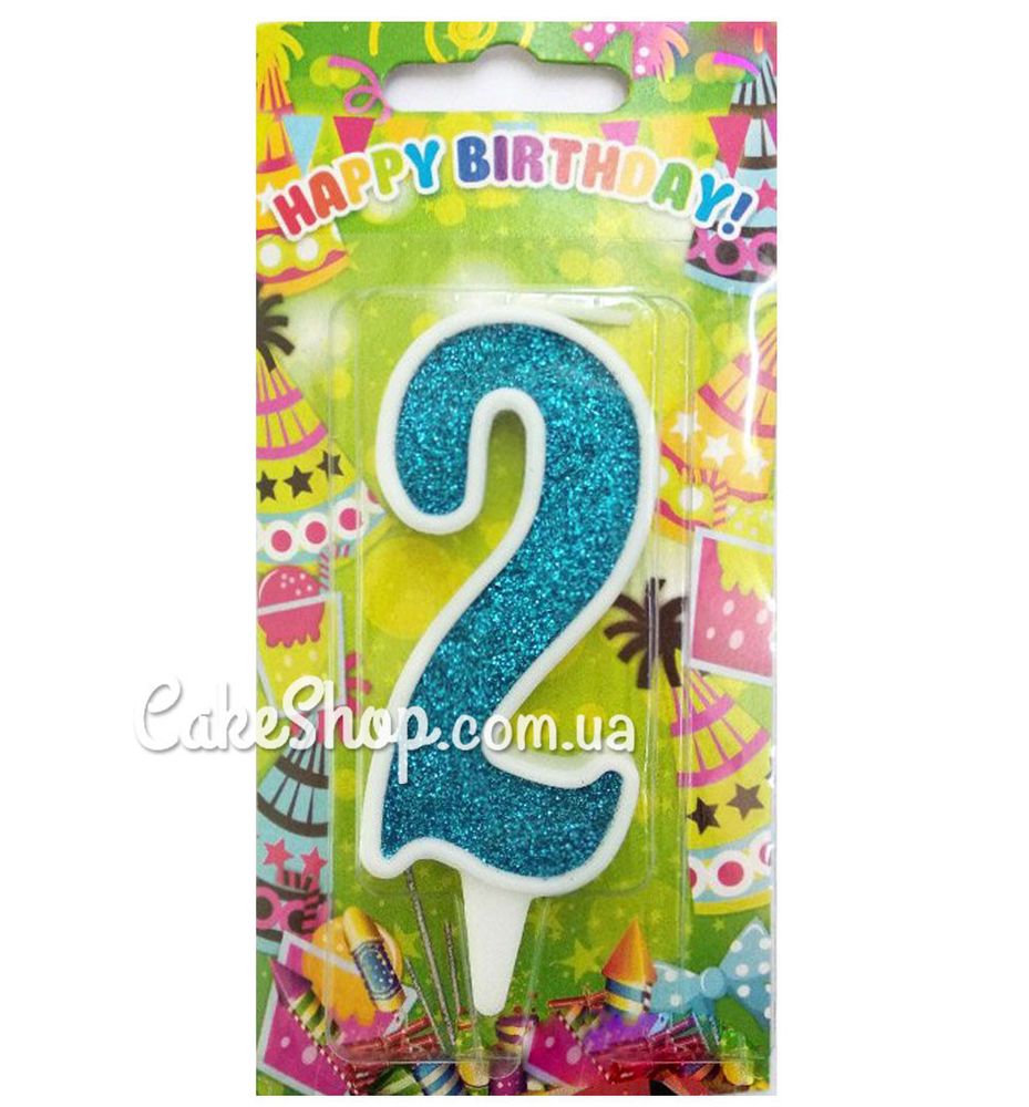 Ціна на Тортова свічка цифра Класика аквамарин - 2 дорівнює 12 грн.