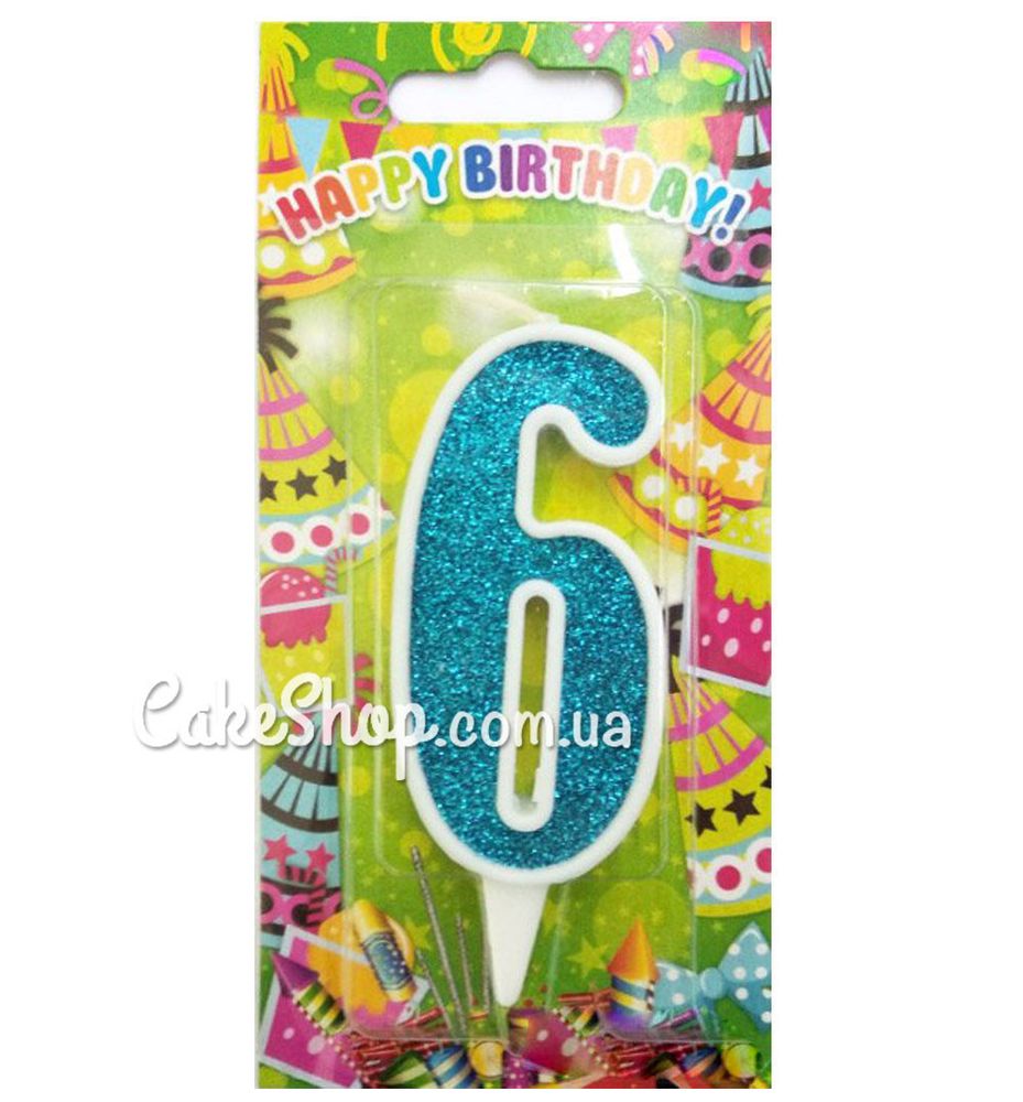 Ціна на Тортова свічка цифра Класика аквамарин - 6 дорівнює 12 грн.