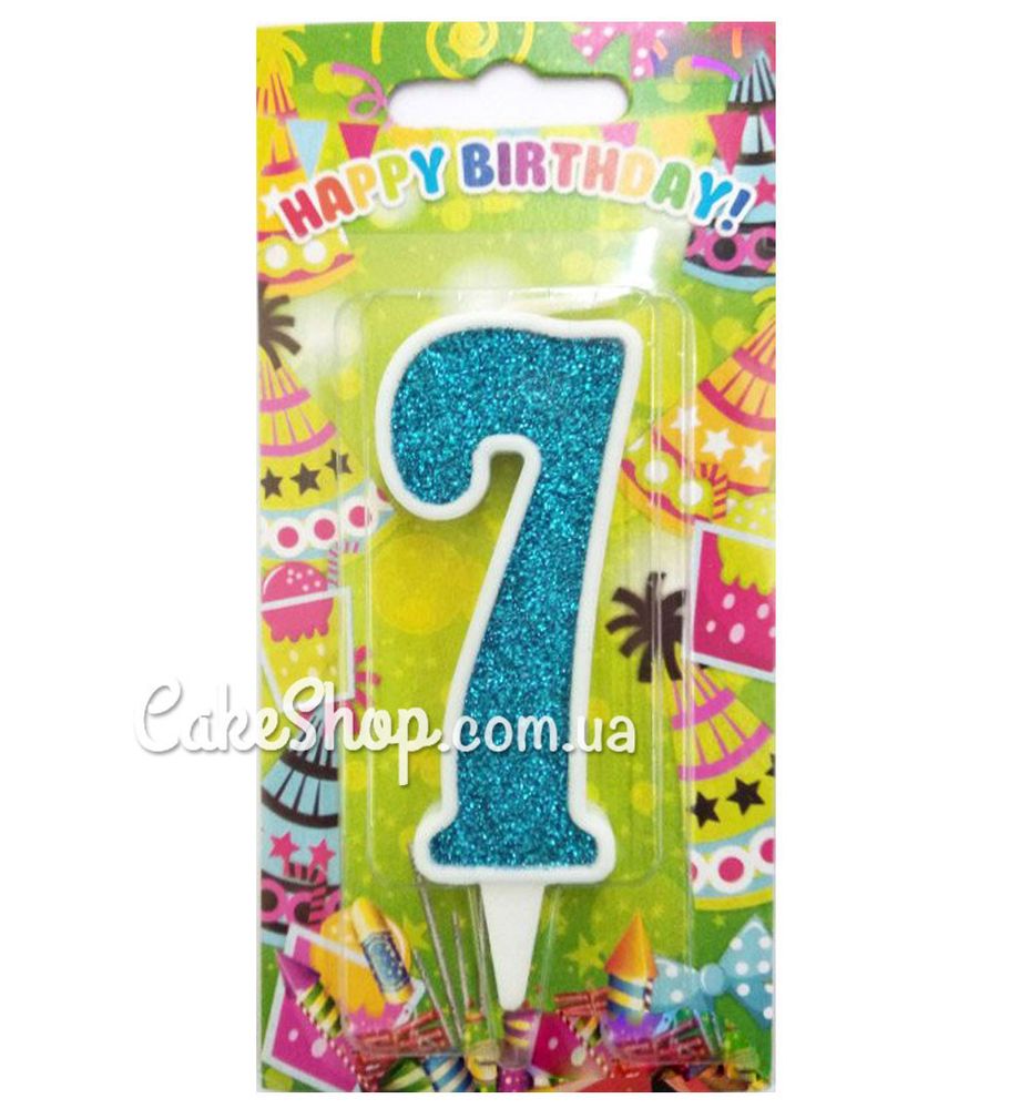 Ціна на Тортова свічка цифра Класика аквамарин - 7 дорівнює 12 грн.