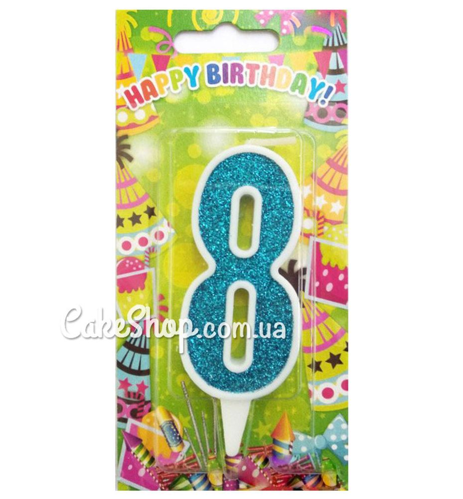 Ціна на Тортова свічка цифра Класика аквамарин - 8 дорівнює 12 грн.