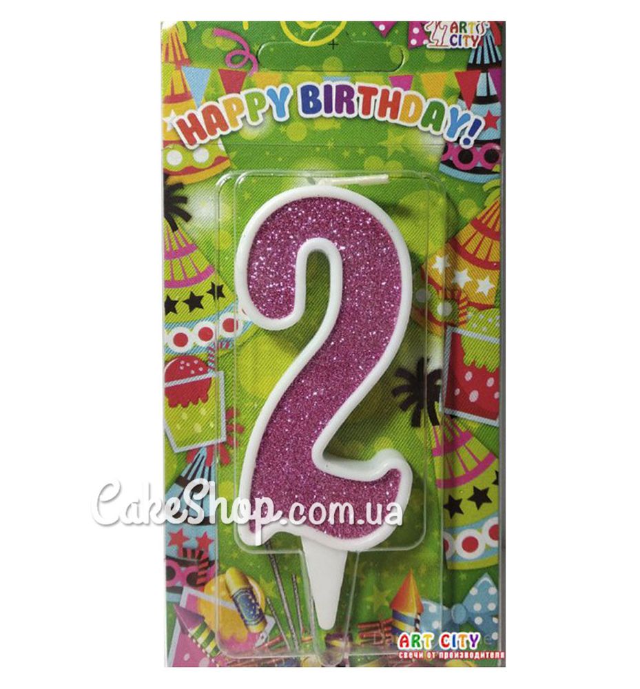 Ціна на Тортова свічка цифра Класика рожевий блиск - 2 дорівнює 12 грн.