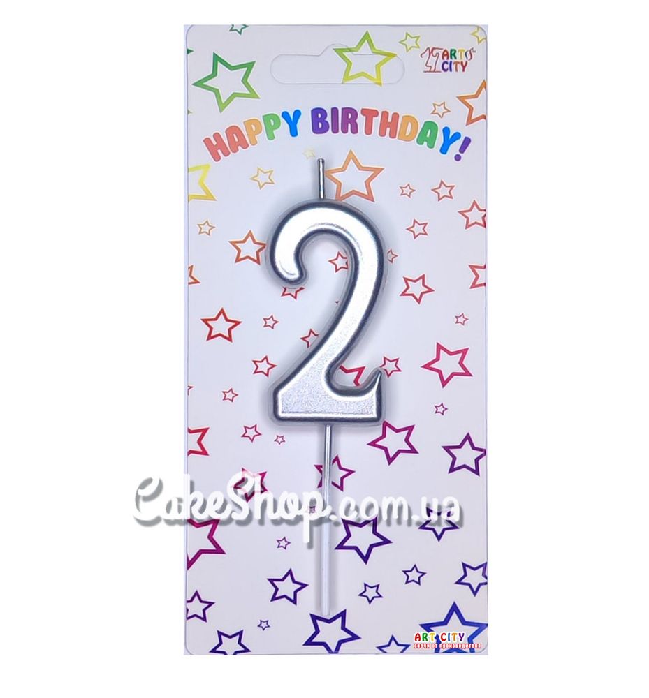 Ціна на Тортова свічка цифра Металізована срібло - 2 дорівнює 25 грн.