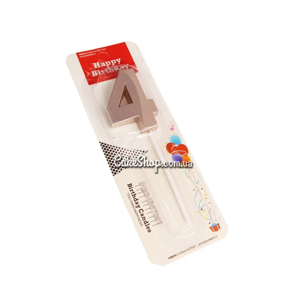 Ціна на Тортова свічка цифра рожеве золото - 4 дорівнює 47 грн.