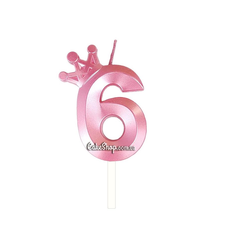 Ціна на Тортова свічка цифра з короною рожева - 6 дорівнює 50 грн.
