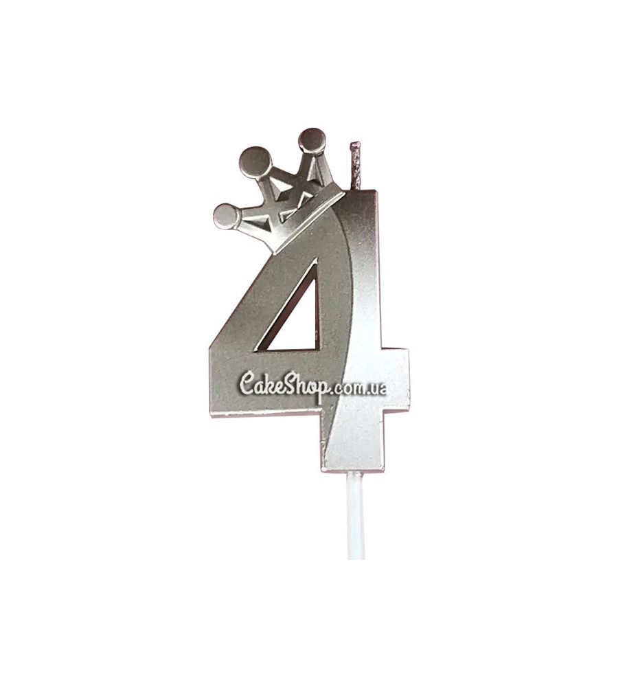 Ціна на Тортова свічка цифра з короною рожеве золото - 4 дорівнює 50 грн.