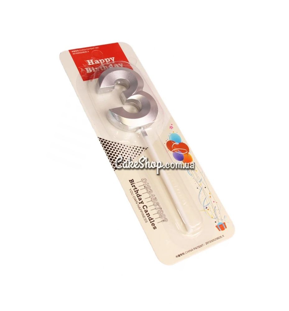 Ціна на Тортова свічка цифра срібло - 3 дорівнює 47 грн.