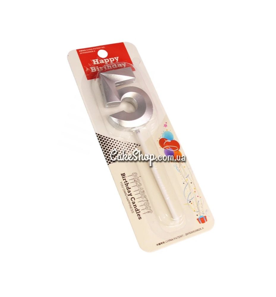 Ціна на Тортова свічка цифра срібло - 5 дорівнює 47 грн.