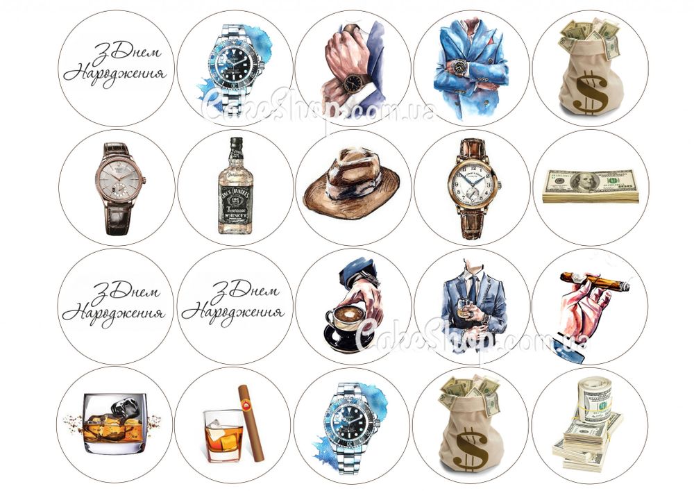 Ціна на Вафельна картинка Чоловічий набір на капкейки дорівнює 50 грн.
