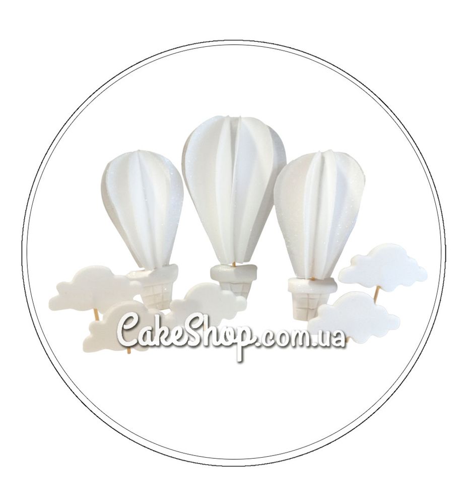 Вафельний декор Повітряні кулі з хмаринками Білі ТМ Іриска