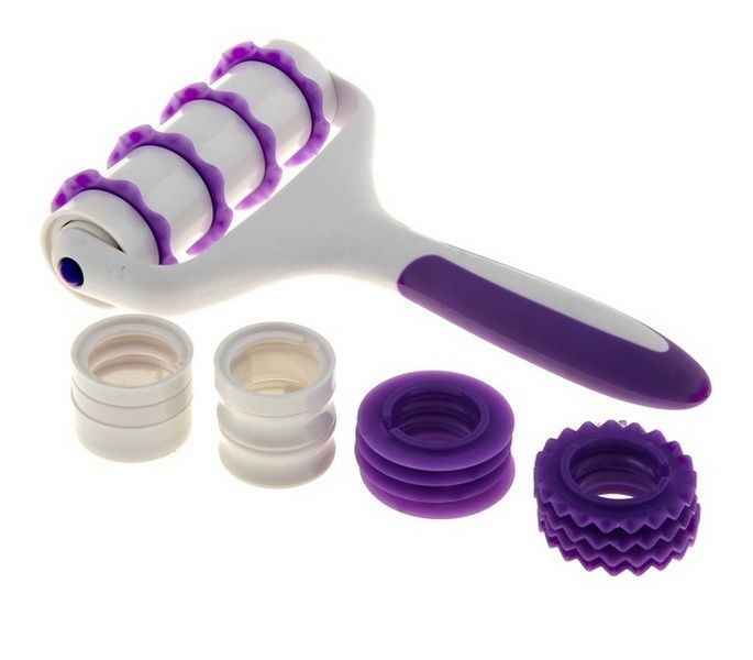 Валик кондитерський для нарізки смуг призначений для роботи з мастикою, марципаном і цукрової пастою. Валик складається з ручки-утримувача, валика і насадок різної конфігурації.