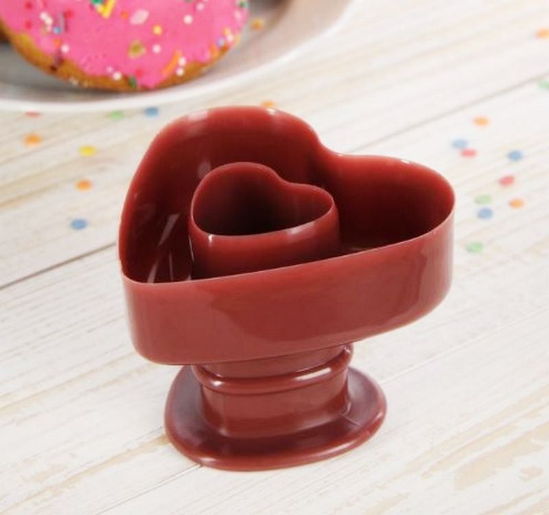 Вирубка для пончиків Серце - це пластиковий різак, призначений для виготовлення пончиків. Виготовлена вирубка з якісного пластику, має гострі краї і зручну ручку.