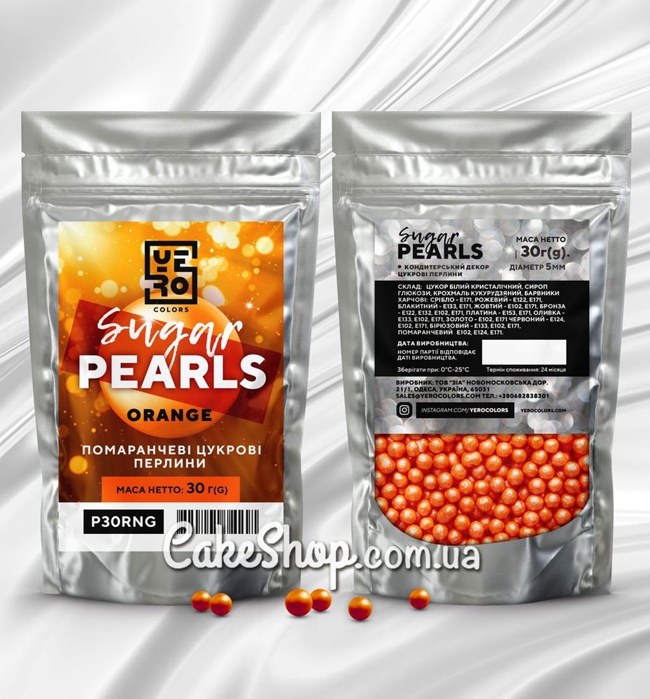 Ціна на Перлини цукрові помаранчеві YERO, 5 мм дорівнює 65 грн.